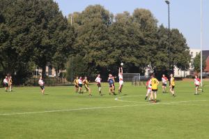 Our next game was against the sleeveless (á la Trevor Giles) team from The Hague, another well-established football team on the continent. In a game that we had started well and had more ball possession than in the first game, we hit some bad wides and did not take our chances, so that we finally succumbed to a 5-point defeat. At times, our semi-final team did very well and we scored some great goals from Eddie Morris and our Düsseldorf club teammates Stefan and Mick.