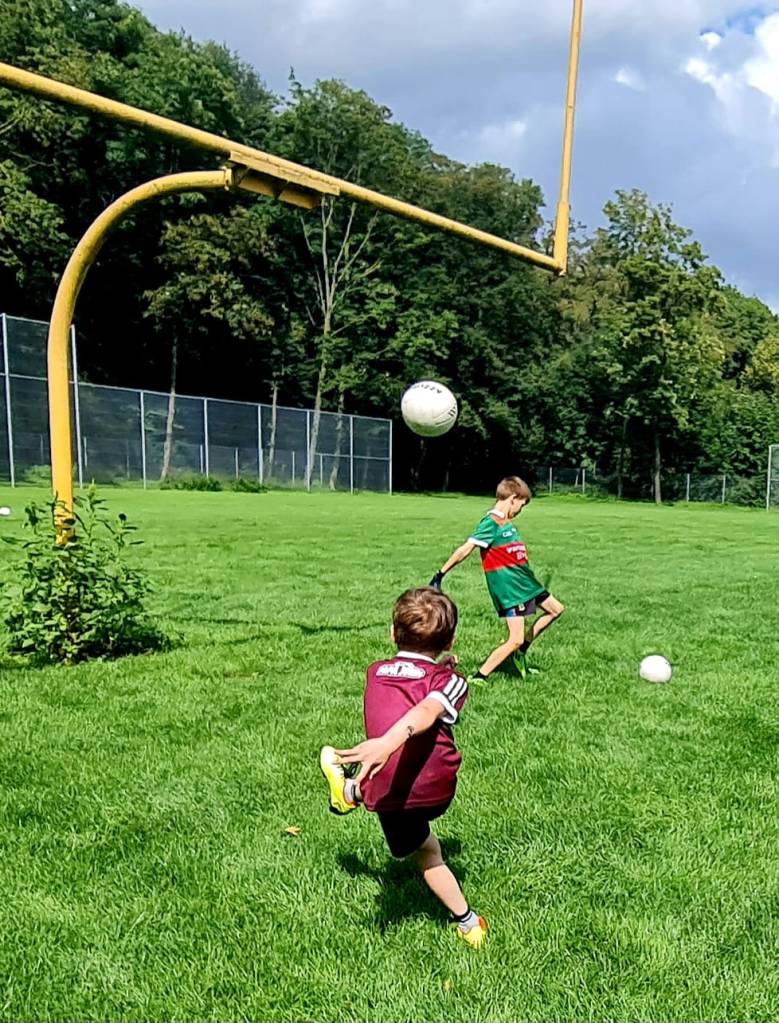 Jack Cotter leitete das Coaching, unterstützt von Fabian, Jan, Frank, Oisín und anderen. Die Kinder hatten großen Spaß daran, die Grundlagen des Hurling zu erlernen, und durften am Ende auch noch Minispiele spielen. Wir hoffen, dass wir in Zukunft mehr dieser Kinder beim Training sehen werden! Sie sind herzlich willkommen, am Jugendtraining teilzunehmen. Wer Interesse hat, kann sich in unserem Clubkalender oder direkt bei uns erkundigen, wann das Training stattfindet.