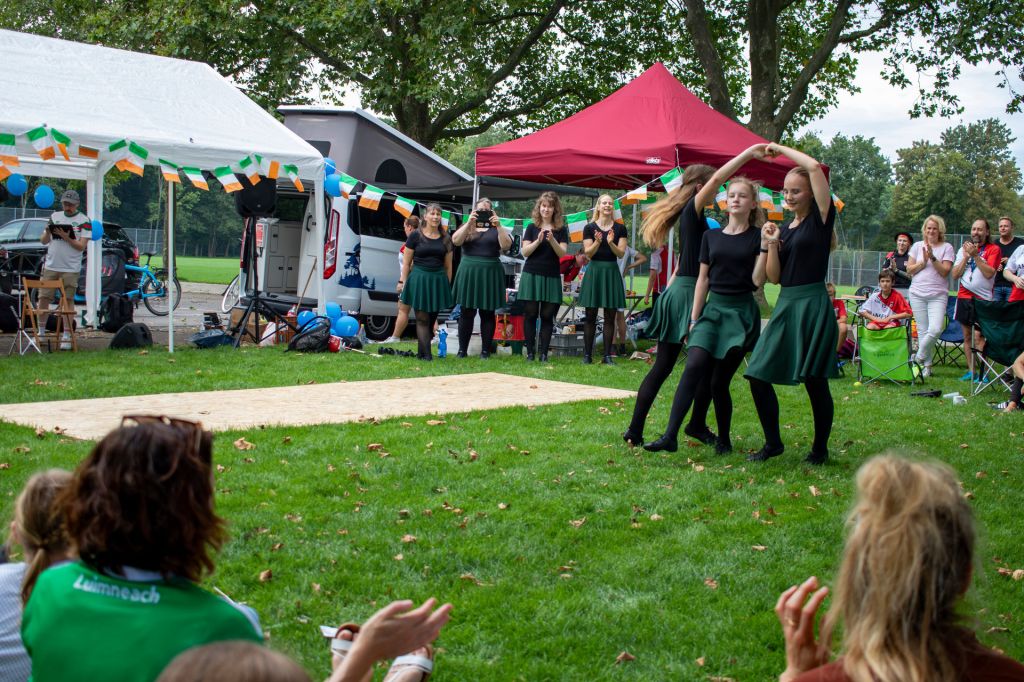 In terms of events, we started with a full-blooded Gaelic football match. We had youths and adults playing together, with the condition that adults could not tackle the kids and doing so could result in frees against the offending adult. Later, we played a full hurling/camogie match with the same rules. The players showed great competitiveness and commitment in the games. These matches also served as preparation for the upcoming European Round 4 in Den Haag.
