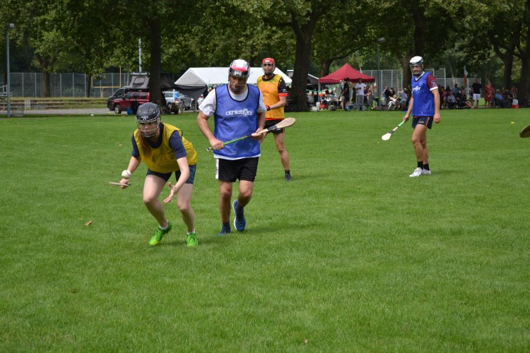 Was die Veranstaltungen angeht, so begannen wir mit einem echten Gaelic Football Spiel. Es spielten Jugendliche und Erwachsene zusammen, wobei die Erwachsenen die Kinder nicht angreifen durften, da dies zu einer Strafe gegen den fehlbaren Erwachsenen führen konnte. Später spielten wir ein komplettes Hurling/Camogie-Spiel mit denselben Regeln. Die Spielerinnen und Spieler waren sehr wettbewerbsfähig und zeigten großes Engagement in den Spielen. Diese Spiele dienten auch als Vorbereitung auf die bevorstehende europäische Runde 4 in Den Haag.