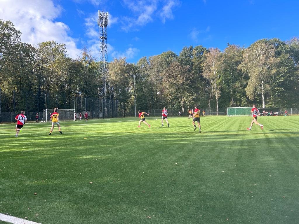 The game started with great anticipation; both teams were ready to give it their all. The Cologne Celtics fielded a strong lineup, with Niall guarding the goalposts, and Michael, Fred, and Naoise forming the defensive unit. Dave Ryan from Waterford took charge in midfield, partnering with Santi, while up front, the team had Dave from Ballincollig, Killian from Cork, and Niall Kavanagh, who had a strong start to the game.