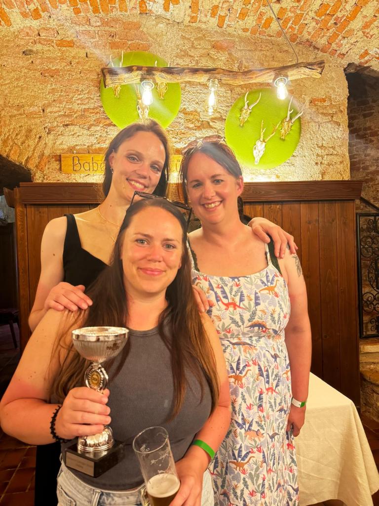 Being happy for all of us on the Lux/Cologne team, Cologne for beating our rivals and winning the shield again, and Luxembourg for winning their first trophy, there was nothing to do but have a refreshing and well-deserved beer to end the tournament. So we, the Cologne Squad, did… Laura, Svenja, Eoin, Frank, Oisín and myself enjoyed a few beers in the shades before heading back to the hostel.